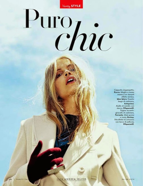 Charlie Newman by Andrea Olivo for VANITY FAIR ITALIA, AUGUST 2014 in "Puro Chic". Leonardo Caligiuri styled Charlie in Kocca, MaxMara, Anteprima, DSquared2, Ferrante, Rochas, Intimissimi, Gucci, Chanel, Marni, Liu Jo, Ermanno Scervino, H&M, H&M Premium, Ports 1961, iBlues, Pinko and Seventy.