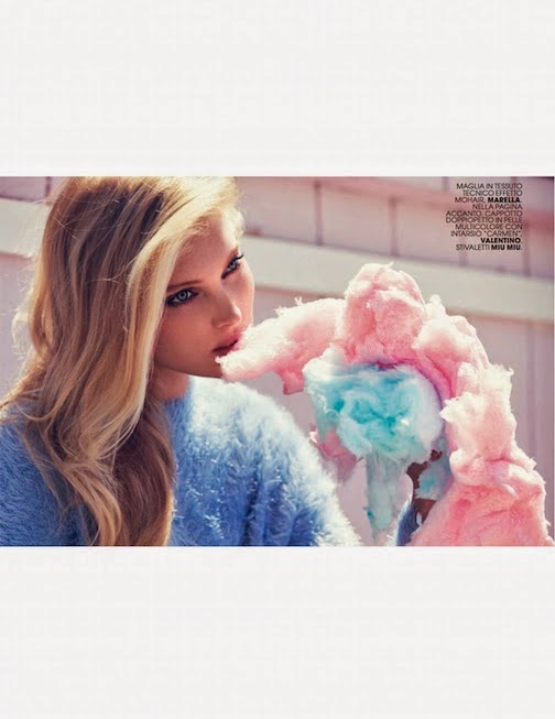 Elsa Hosk by David Bellemere for Marie Claire Italia, September 2014 in "CANDY COLOR". Elisabetta Massari styled Elsa in Ray-Ban, Miu Miu, Moschino, Gucci, Marella, Valentino, Ermanno Scervino, Tod's, Fendi, J Brand, Salvatore Ferragamo, Moncler Gamme Bleu, Balenciaga, Moschino, Prada, Missoni, Brunello Cucinelli, DSquared², Louis Vuitton and Versace.