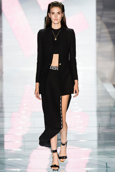 Donatella Versace's S/S 2015 Collection was modern with a uncomplicated silhouette. The pieces consisted of color blocking, crystal mesh and the house's Medusa signature motif.