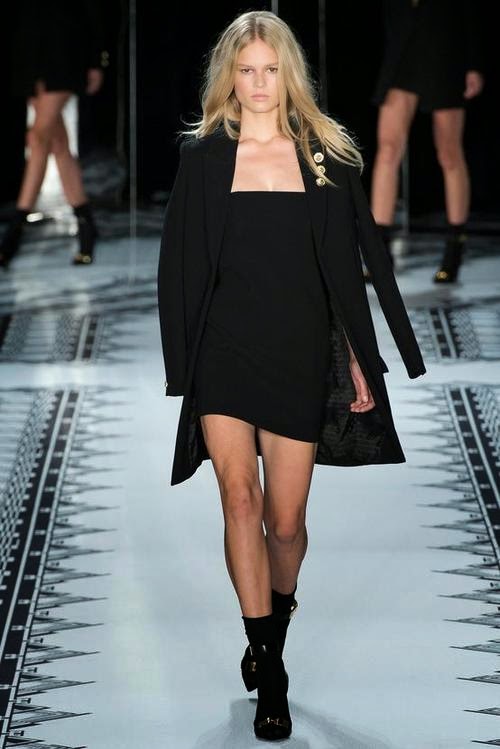 Anthony Vaccarello's collaboration with VERSUS VERSACE showcased a young and sexy collection. VERSACE's Grecian key pattern and gold piercings were seen throughout. The signature Medusa was replaced by a lion.