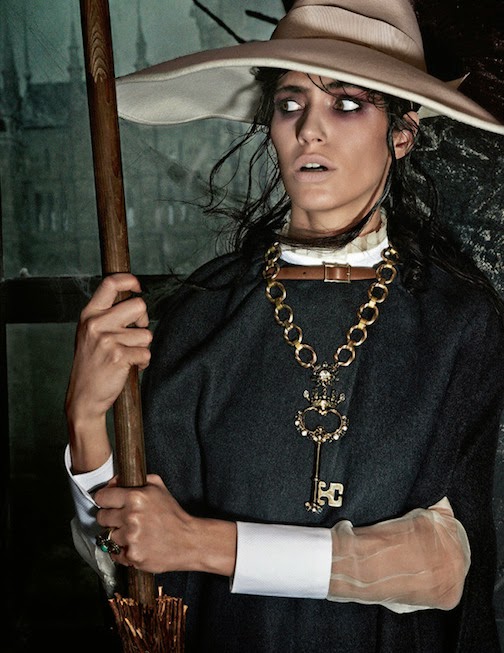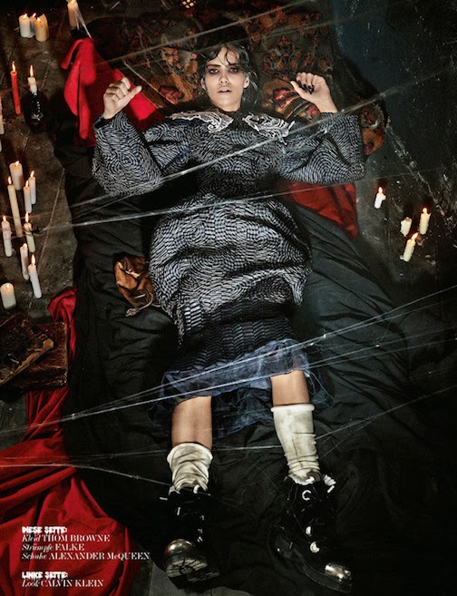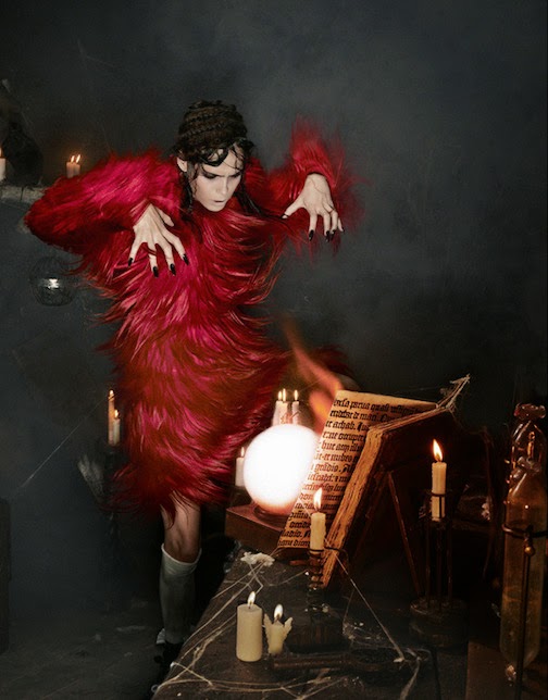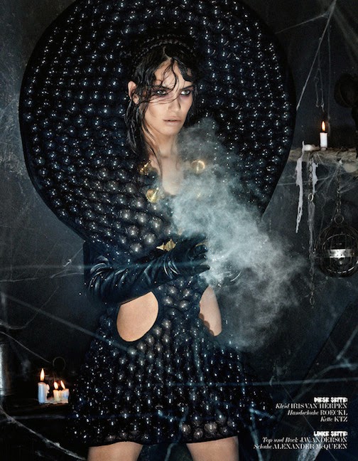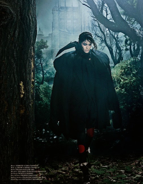 Amanda Wellsh by Giampaolo Sgura for Interview Germany, October 2014 in "Hokus Pokus". Klaus Stockhausen styled Amanda in Iris van Herpen, Roeckl, J. W. Anderson, Alexander McQueen, Paul Smith, Thom Browne, Emporio Armani, Prada, Falke, Dolce & Gabbana, Wolford, Valentino, Tod's and Etro.