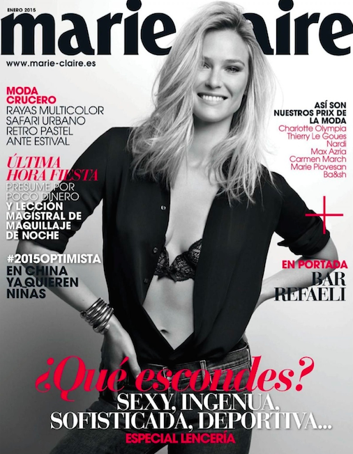 Bar Refaeli by Thierry Le Gouès in Marie Claire España, January 2015. Jennifer Bauser styled Bar in Intimissimi, Bulgari, Dsquared2, Loewe, Levi's, Agent Provocateur, Cartier and Chanel.