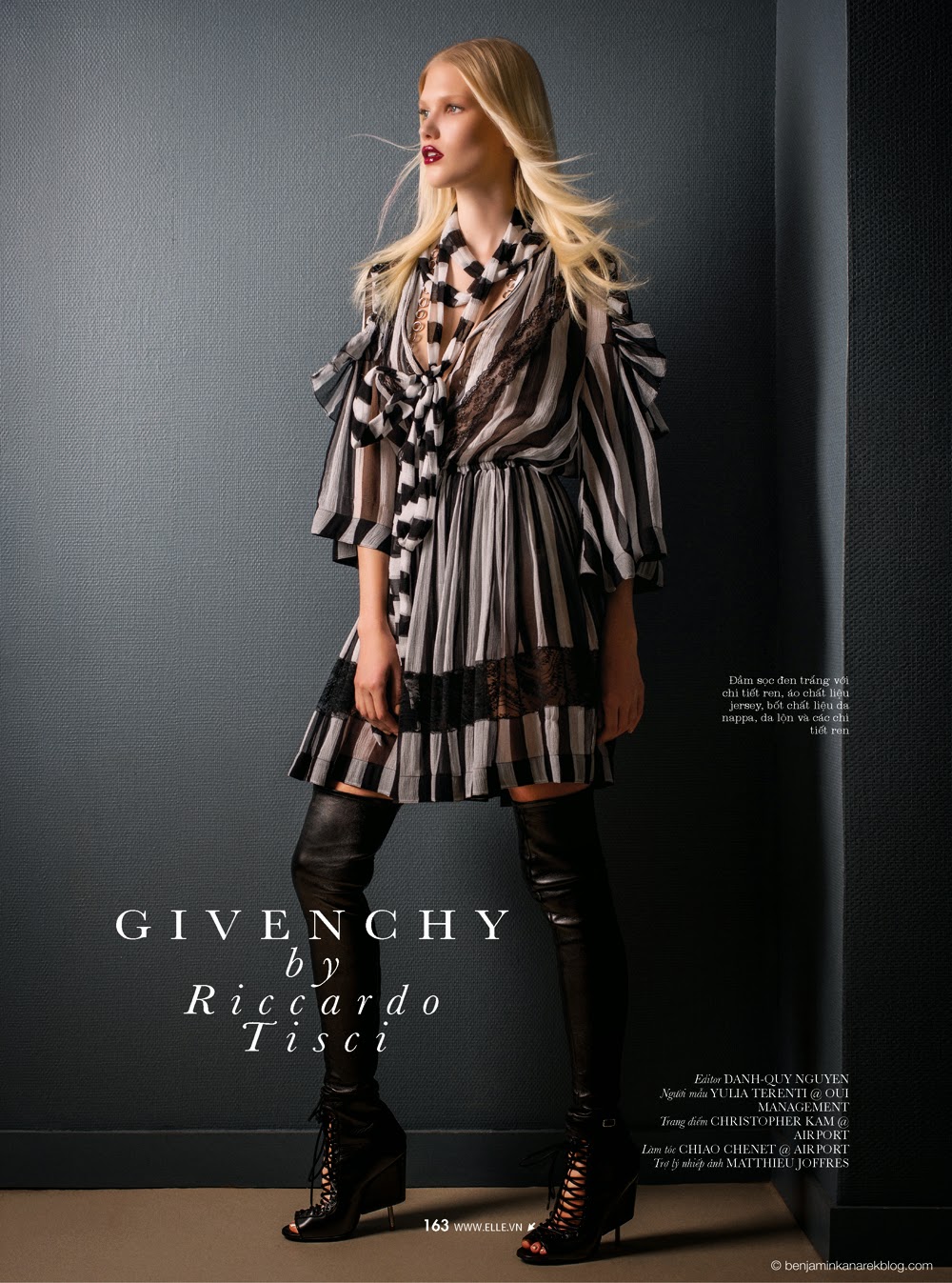 Yulia Terenti by Benjamin Kanarek for ELLE VIETNAM, FEBRUARY 2015 in "Spring/Summer 2015 Trends". Colin Peyrot styled Yulia in DOLCE & GABBANA, CHLOÉ, CÉLINE, CHANEL, DIOR, HERMÈS, GIORGIO ARMANI, PRADA, GUCCI, DRIES VAN NOTEN, JEAN PAUL GAULITER, VERSACE, SAINT LAURENT by Hedi Slimane and GIVENCHY by Richardo Tisci.