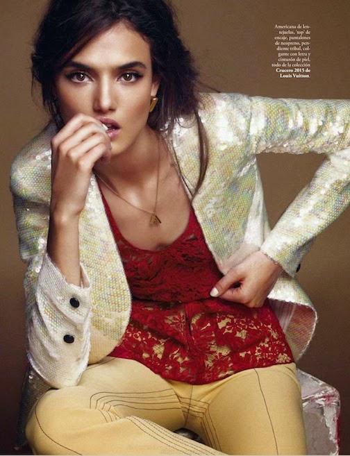 Blanca Padilla by Xavi Gordo for ELLE ESPAÑA, JANUARY 2015 in "Lujo seventies". Inmaculada Jiménez styled Blanca in Louis Vuitton for this editorial.