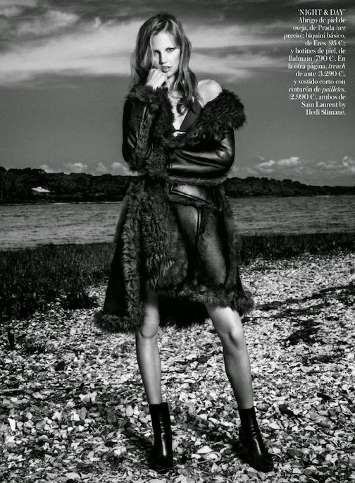 Elisabeth Erm by Victor Demarchelier for VOGUE SPAIN, JANUARY 2015 in "Juegos de invierno". Charles Varenne styled Elisabeth in Céline, Eres, Chloé, Balmain, Prada, Saint Laurent by Hedi Slimane, Emilio Pucci, Louis Vuitton, Burberry Prorsum, Stella McCartney and Balenciaga.