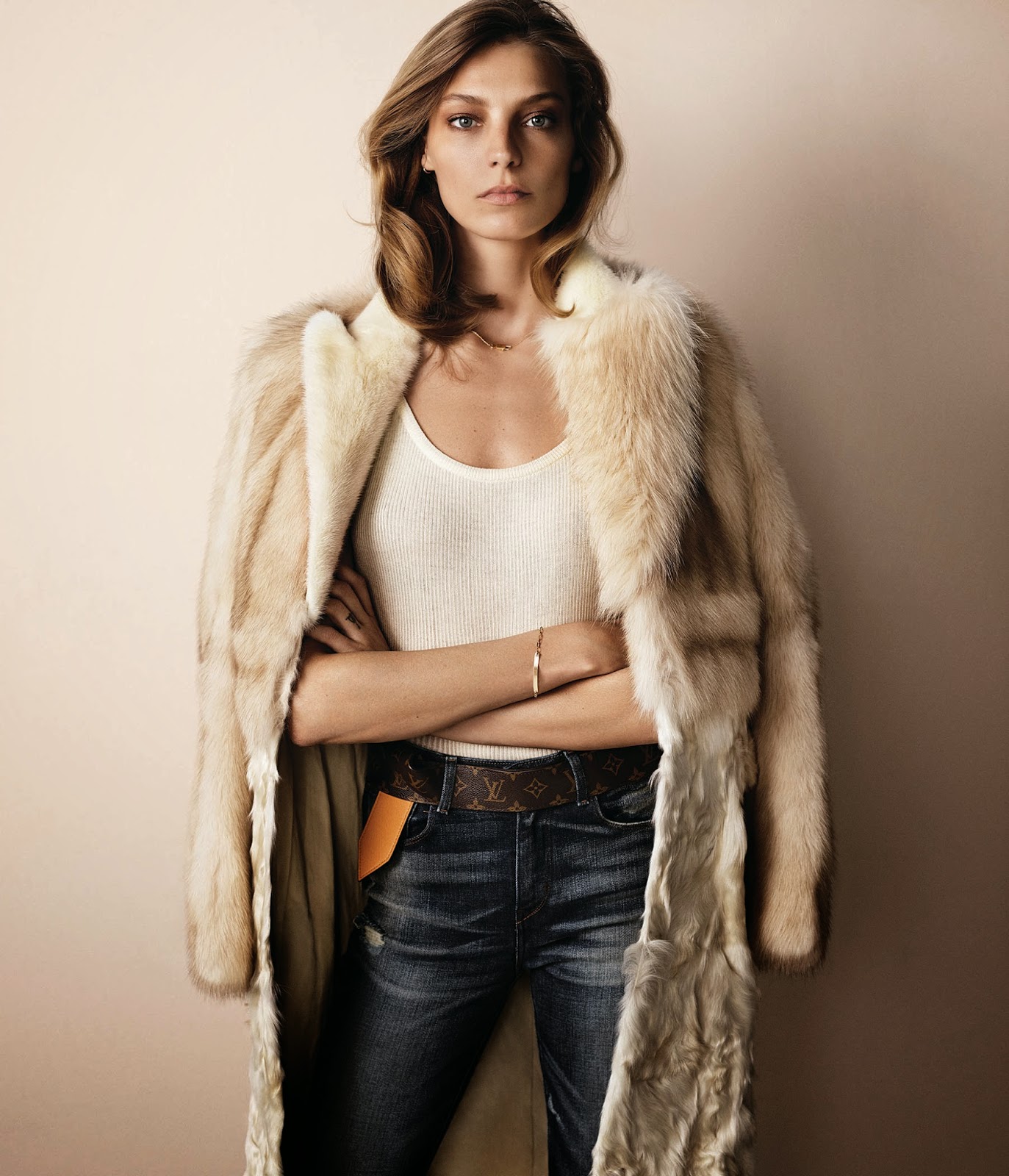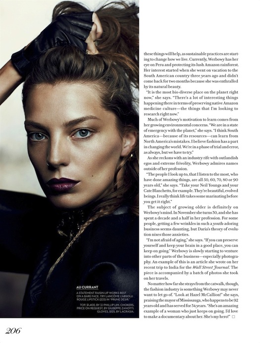 Daria Werbowy by Josh Olins for WSJ MAGAZINE, SEPTEMBER 2014 in STYLE AND SUBSTANCE. Alastair McKimm styled Daria in Gucci, Eres, Louis Vuitton, Thakoon, Jennifer Fisher, ChloƩ, Ralph Lauren Black Label, Levi's, Christopher Kane, Givenchy by Riccardo Tisci and Prada.