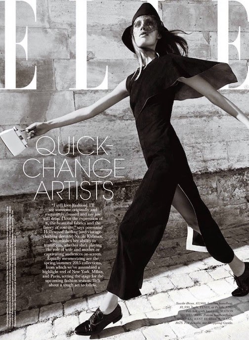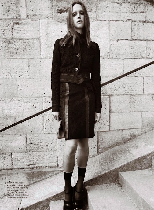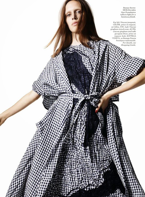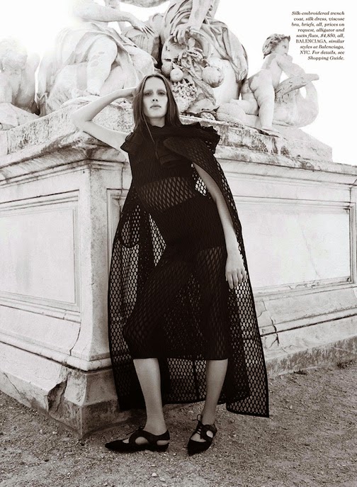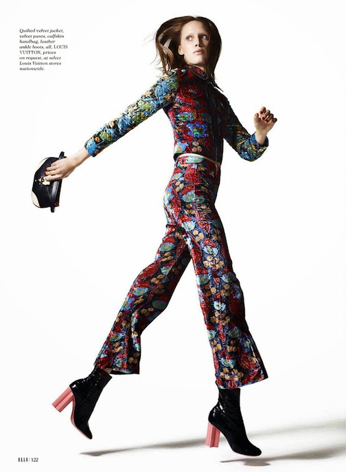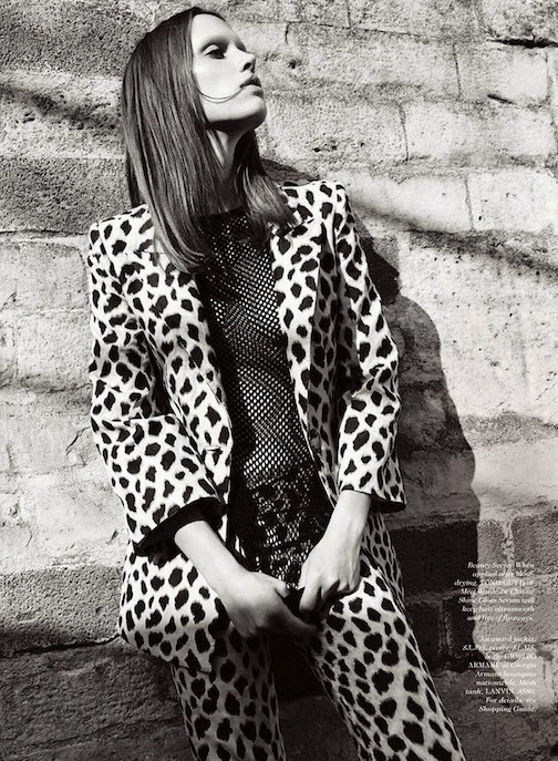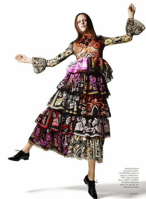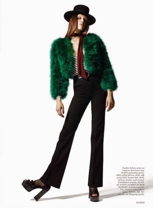 Georgia Hilmer by Liz Collins for ELLE, JANUARY 2015 in "EURO STAR". Samira Nasr styled Georgia in Saint Laurent by Hedi Slimane, Versace, Lanvin, Manolo Blahni, Fogal, Chanel, Maison Michel, Dior, Balenciaga, Valentino, Miu Miu, Chloé, Cartier, Prada, Dolce & Gabbana, Céline, Bottega Veneta, Louis Vuitton, Lanvin and Gucci.