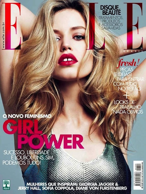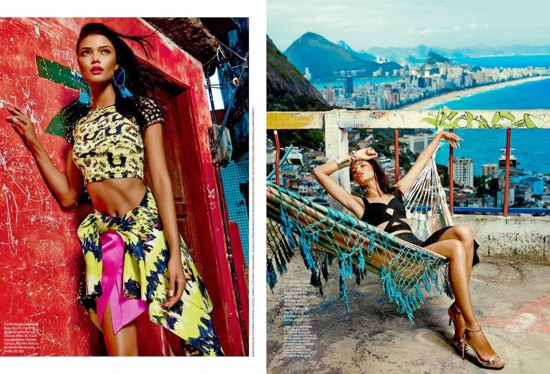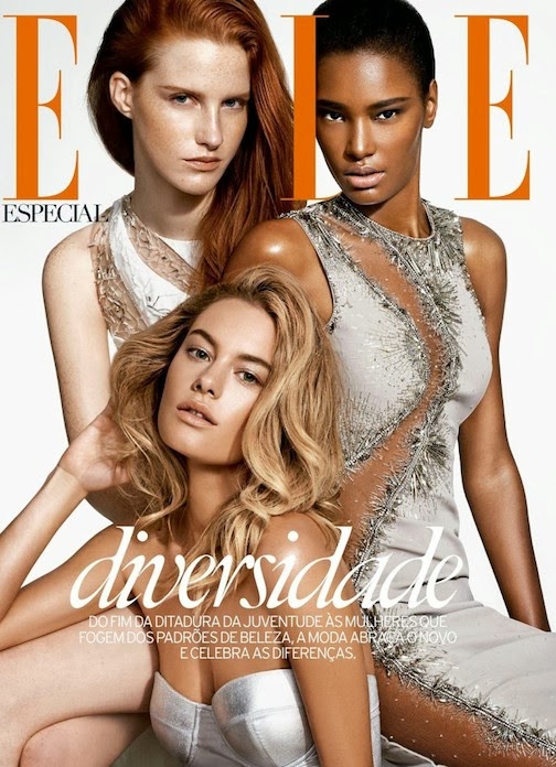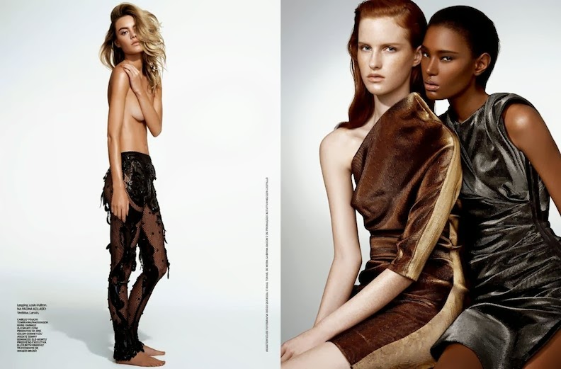 Camille Rowe, Magadalena Jasek and Ysaunny Brito by Nicole Heiniger for ELLE BRAZIL, FEBRUARY 2014 in "Nações Unidas". Ines Néspoli styles the models in Norma Kamali, Wolford, Tom Ford, Lanvin, Louis Vuitton and Chanel.