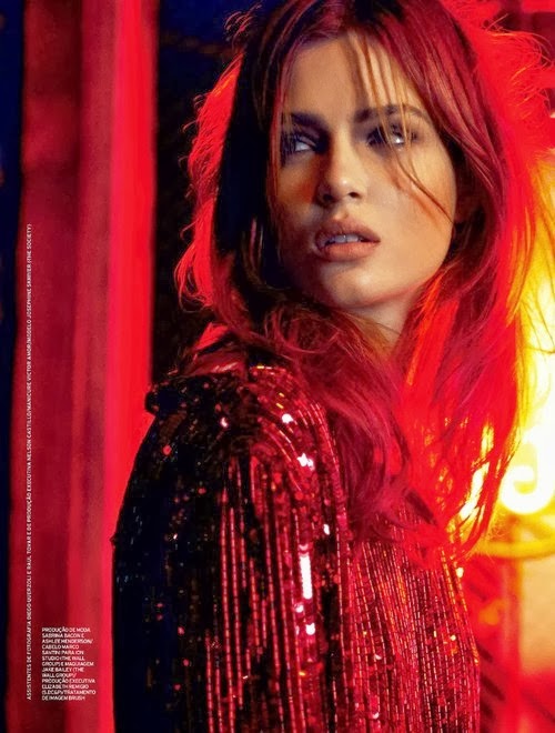 Model Caroline Trentini looks Stunning in the November issue of Elle Brazil. She's wearing some of Brazil's hottest Designs from the Spring 2011 Collections. It was styled by Susana Barbosa. Her long red locks look Amazing with her smokey eyes and stained lips. Try this look with a smudge proof liner inside the inner rims of eyes.