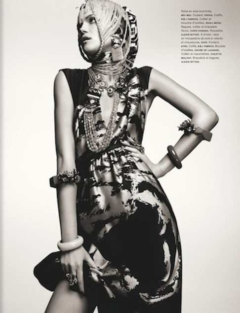 NUMÉRO #142, APRIL 2013 "La Bohème". Bill Mullen styles Kasia in TALBOT RUNHOF, PROVA, TOM FORD, EMILIO PUCCI, JANIS BY JANIS, PRADA, ANNA E ALEX, FOREST OF CHINTZ, MIU MIU, PROVA, IRADJ MOINI, CHIRS HABANA, ALEXIS BITTAR, DIOR HOUSE OF LAVANDE, COLETTE MALOUF, ANNA E ALEX, FORGET ME NOT, ALYSSA NORTON, JANIS BY JANIS SAVITT, MAWI, ANITA QUANSAH, NICHOLAS KIRKWOOD and GIORGIO ARMANI. Hair and makeup was done by Ward and Mariel Barrera. Kasia's nails were done by Dawn Sterling.