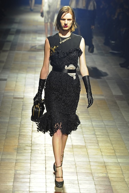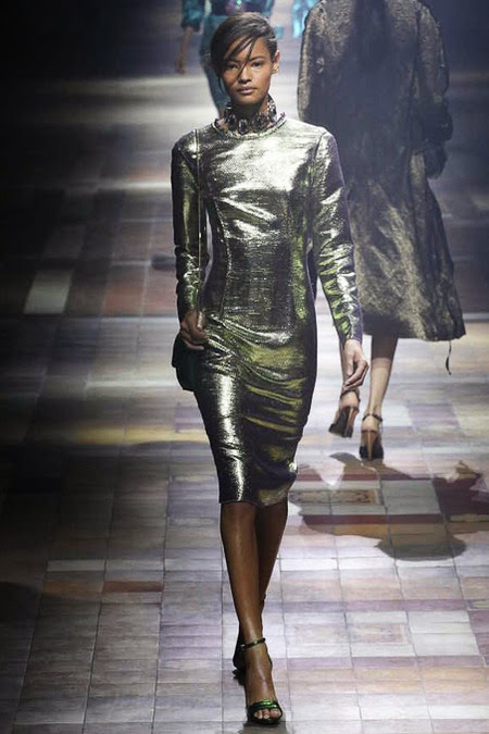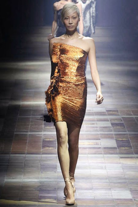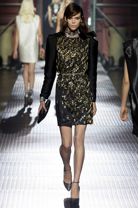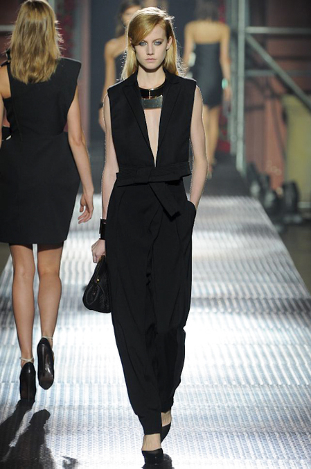 Creative Director Alber Elbaz created a beautiful Collection. It had a mixture of masculine and feminine. The body hugging dresses showed off the feminine form while the tailored jackets and pants were loose.