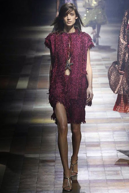 Alber Elbaz's collection for LANVIN incorporates his talent in tailoring, draping techniques and structural detail. The RESORT collection has a inspired 80's glamour, 1920's and sportswear feel to it. The fabrics include prints, sheers and knits in red, cream, black, yellow, peach, blue, green and metallic shades.