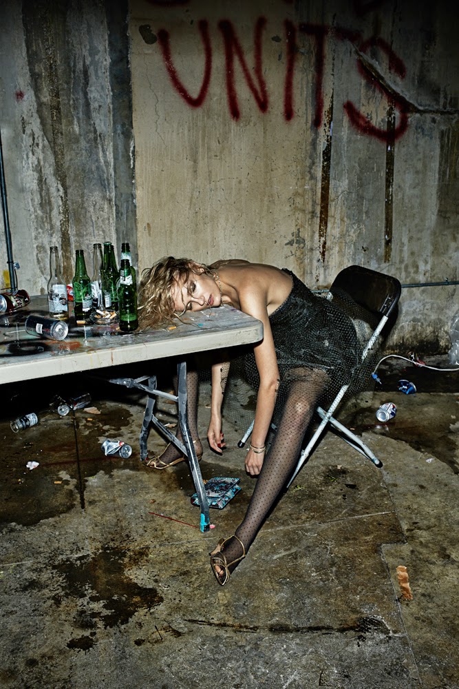 Anja Rubik, Lily Donaldson, Andreea Diaconu and Edita Vilkeviciute by Fabien Baron for Interview Magazine, November 2014 in "Pretty Wasted".  Karl Templer styled the models for this editorial.