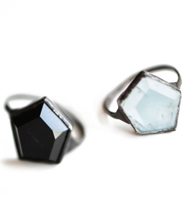AESA - HEX RING - in black onyx or aquamarine, sterling silver - $430