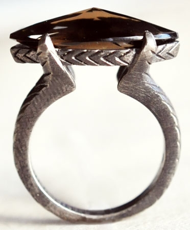 MADE HER THINK - SERPENT MARQUIS RING - smokey quartz stone in oxidized sterling silver - $235