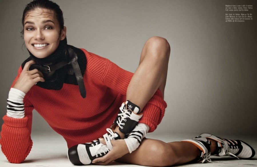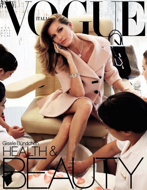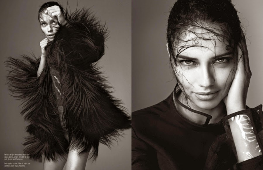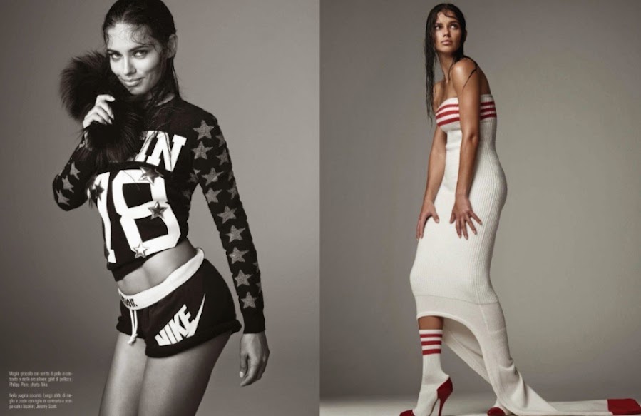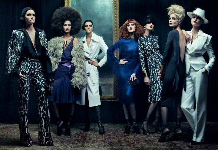 Vogue US. The mixture of Animal Print with Dark Blues, Purples and White is a Great Combination. The Backless Dress is Gorgeous. The Mixture of the smokey eyes and burgundy/nude lips are well thought out too. I wonder if the lipsticks are from his Tom Ford Beauty Collection?