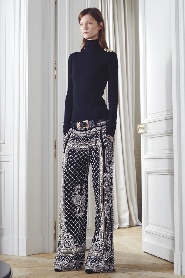 Olivier Rousteing uses the word "Comfy" to describe an informal presentation of this Collection at Balmain's offices. Yes, the Blazers and Bombers came in men's proportions with loose pajama pants in silk or devore velvet.